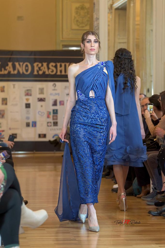 Il primo appuntamento è stato il 24 febbraio presso l’Hotel Melia di Milano, dove ho avuto l’onore di sfilare per lo stilista Valentino Mele e per la sua bellissima collezione. Il secondo appuntamento invece si è svolto in chiusura della settimana della moda, ovvero sabato 2 marzo, presso Palazzo Visconti (Milano) per diversi stilisti internazionali quali Chiara Bacaoco, Patricia Nascimento, Bani Pasricha.